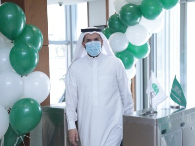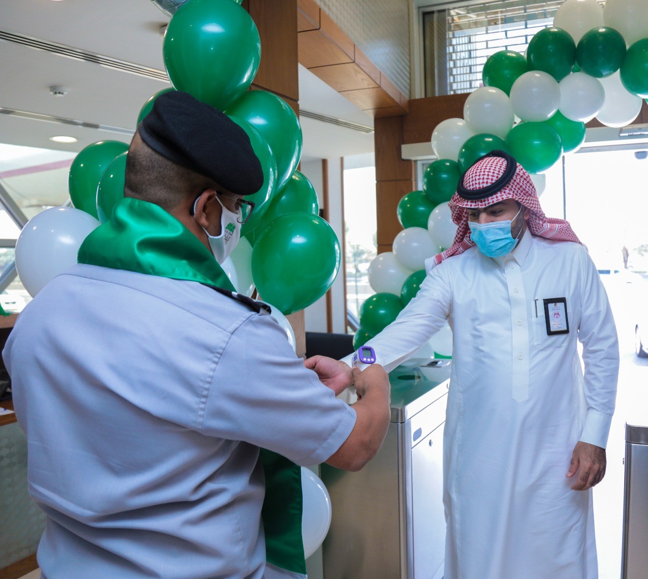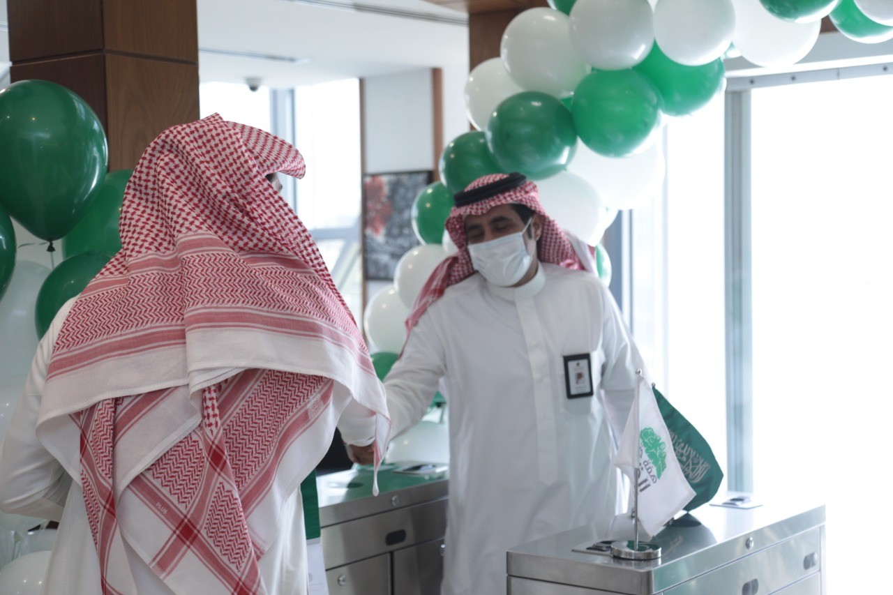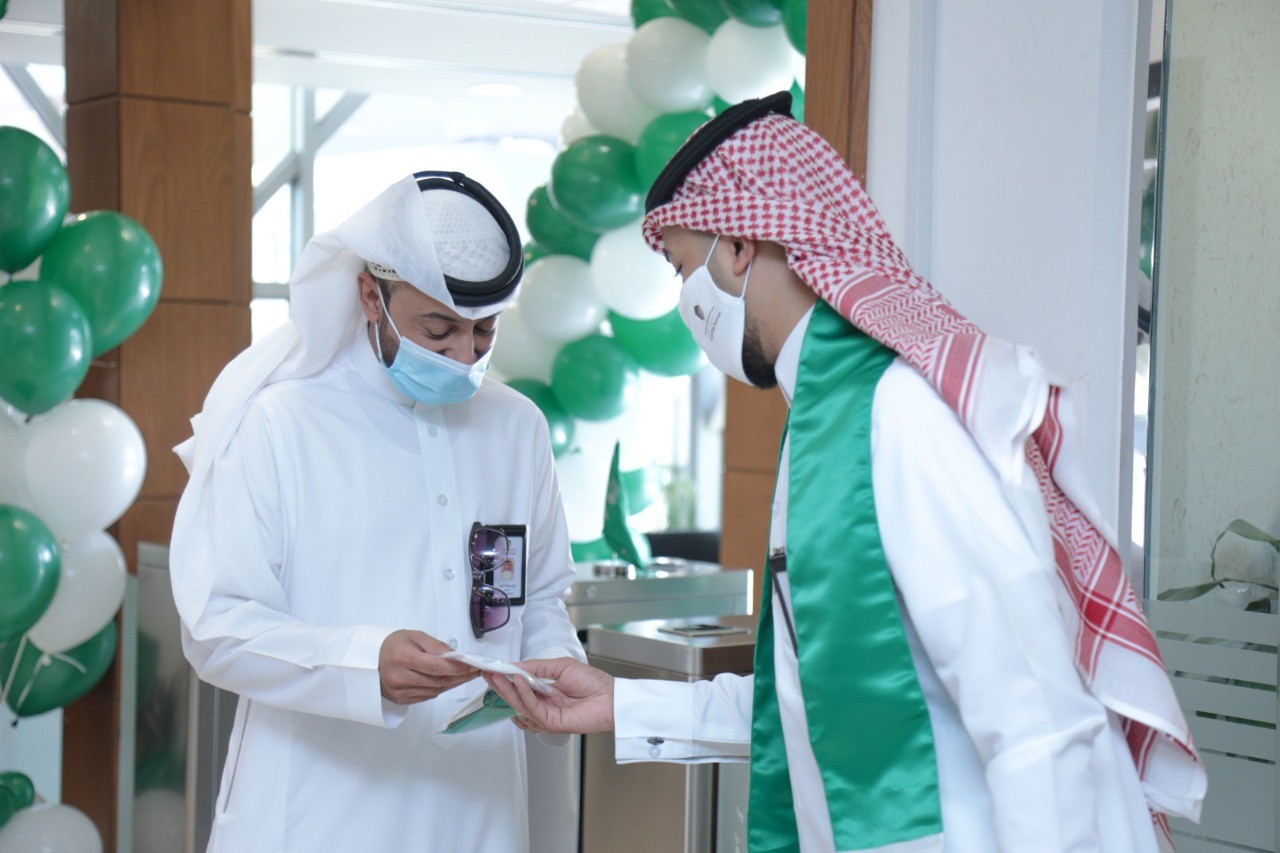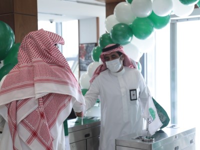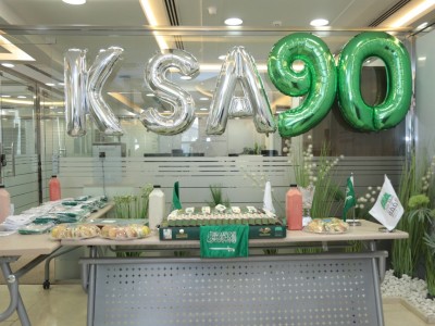 ابتهاجاً باليوم الوطني الـ 90 معهد البحوث يكتسي اللون الأخضر
